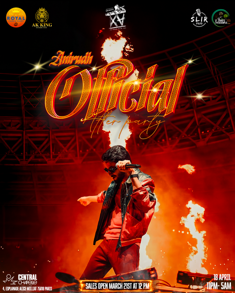 SAVE THE DATE Anirudh Live in Paris – 18 APRIL 2026Join us for an unforgettable evening as Anirudh takes the stage in Paris on April 18th, 2026! Experience the energy, passion, and magic of this incredible performance. BUY NOW BUY NOW